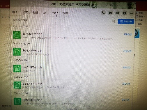 本门课程采用QQ群教学和微信直播。上课在4#实验楼,网络为校园网,总体稳定。上课前,上传学习文件,并提前一天结合PPT同步学习。实际上课采用两种方式:一种是QQ群课堂;一种为交流时的多人语音交流群,需要监控学生时候可以打开视频,课间休息时可打开群课堂视频连线,实时监控学生(下面图片为课程上课的准备情况和作业布置情况);另外一种时微信直播,人数较少,网速尚可,基本无延迟,效果良好。