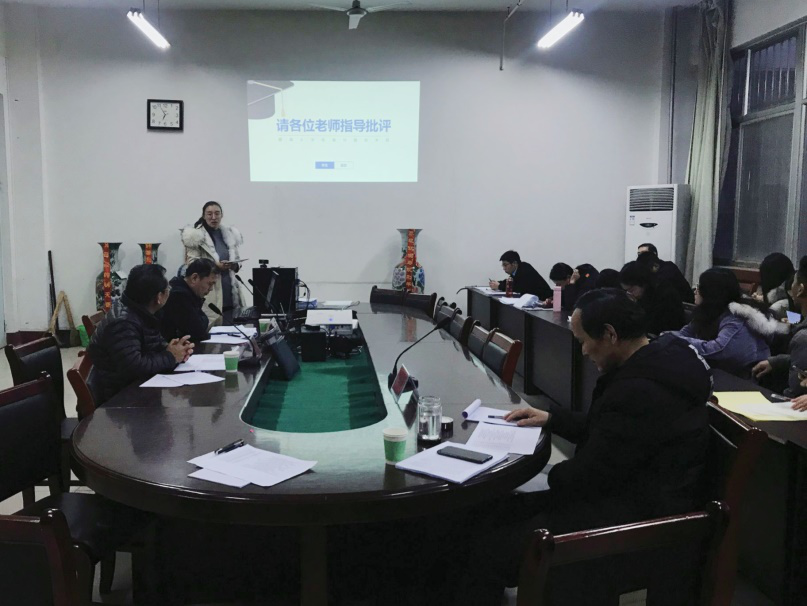会上,学生采用PPT形式对前期已完成的论文工作、论文初稿(研究方法、研究结果与分析、结论等)以及下一步工作计划等方面进行了汇报,评委们认真听取了学生汇报,并就论文存在的问题进行了提问和指导。