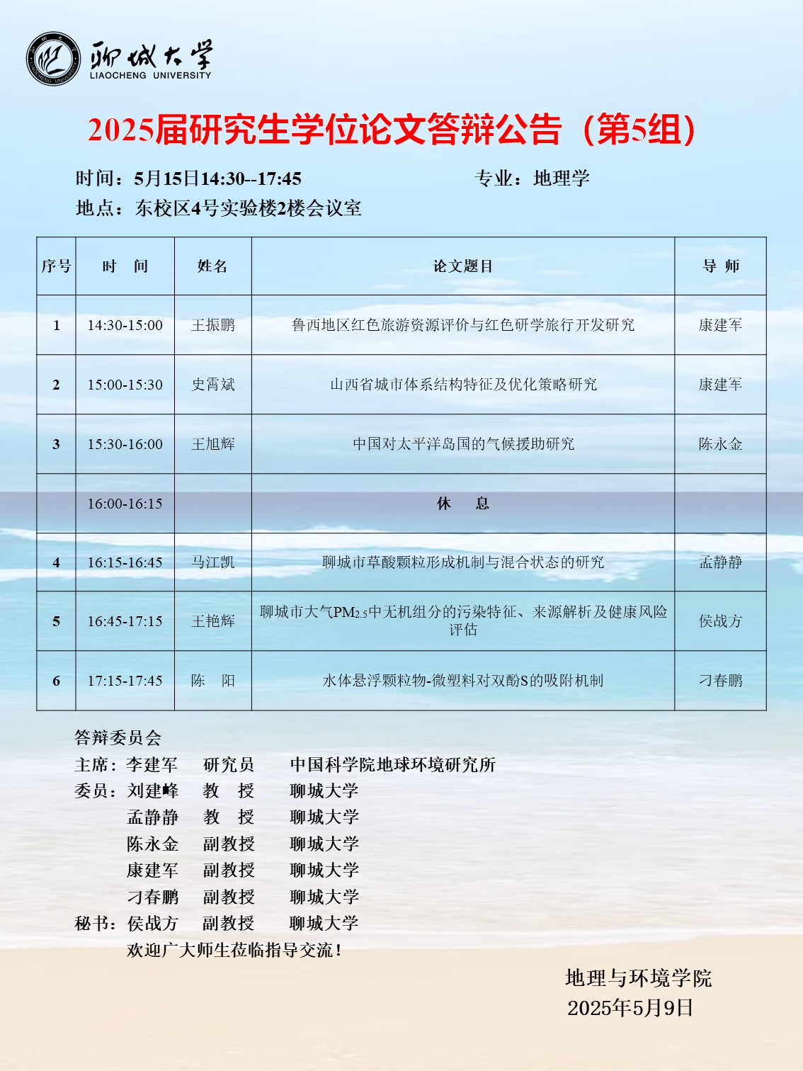 2025届研究生学位论文答辩公告(第五组)