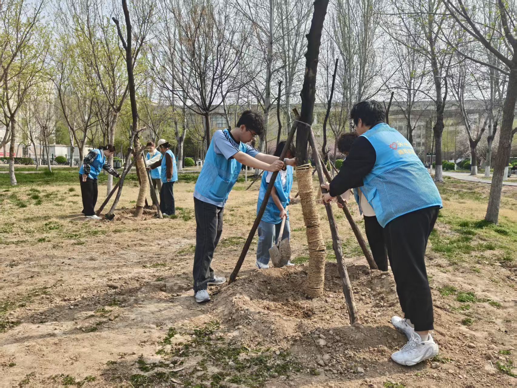 此次植树实践活动,不仅为校园增添了盎然绿意、优化了整体景观风貌,更在亲身劳作中锤炼了青年学子的实干品格,进一步凝聚了志愿服务力量,引导广大青年以实际行动践行生态文明思想,为建设美丽校园、美丽中国贡献青春力量。