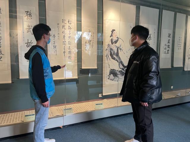 志愿者严格遵守疫情防控要求并进行了测温检查后带领游客们进入孙武祠,前院正中矗立着孙武汉白玉石雕像,孙武手持兵书,睿目远望,游客们纷纷与孙武合照。随后,志愿者带领大家去到了第一展室,本展览分四部分,志愿者依次递进地向游客们介绍了孙武故里在广饶的史实证据和当代专家学者最新的研究成果,并且用生动的语言向游客们讲述了孙武的成就以及他的整个生平事迹,游客们仔细倾听,积极分享自己对孙武故事的感悟和体会,认真欣赏了《孙子兵法》十三篇巨幅刻瓷展廊,近距离地感受了孙武文化。活动结束后,志愿者去了关帝庙大殿,关羽的崇高品质受到了志愿者的敬仰,本次活动圆满结束。
