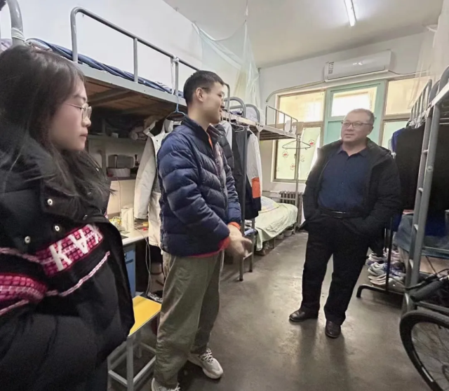 检查过程中,老师们深入了解了留校研究生关于寒假期间学习、生活保障等方面的需求情况,叮嘱同学们注意防寒保暖和安全问题。张院长表示学院将切实解决同学们的实际困难,同学们留校期间一定要格外注意宿舍用电安全与外出人身安全,及时和家人、老师报备自己的动态,并祝愿大家度过一个平安、愉快、充实的假期。