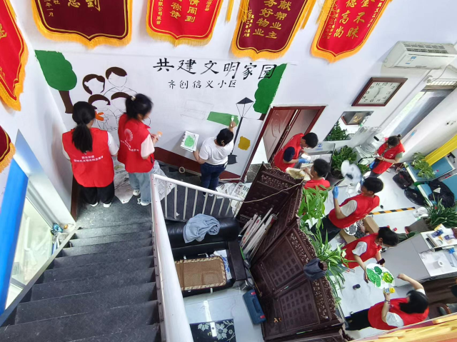 实践负责人填写实践申请表和活动外出举办申请表,学院允许相应时间人员出校。街道负责人与市委家属院负责人联系,允许实践人员进入社区,并准备需要的实践材料,如图画、画笔、颜料等。进入小区楼道内根据图画模板在相应墙上画出图画并进行彩绘。负责人和组织者应将活动产生的垃圾进行清理,最后要及时做好活动总结和活动反馈。本次活动取得圆满成功。