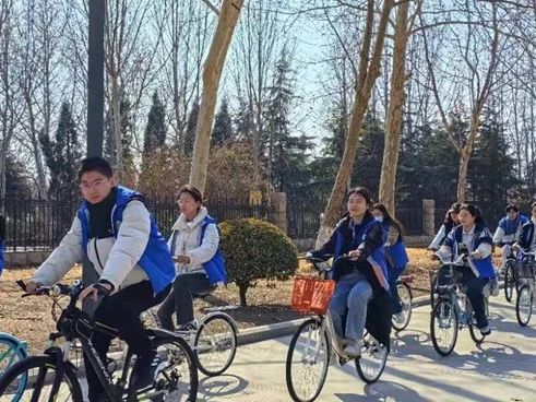 七、“争做文明校园守护者”志愿行动。2023级团支部组成节粮护粮服务队在校园内开展了“我来光盘打卡”群签到,开展厨余垃圾分类和用餐主动收拾餐具活动,引导同学们爱惜粮食。2022级团支部组成低碳环保服务队践行绿色出行理念,在校园内骑行共享单车、清扫校园、护绿爱绿,为文明校园树立志愿先锋形象。