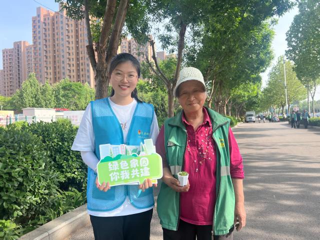 为了更加直观地传达环保知识,实践队员们设计了一份富有创意的海报,上面精心设置了四个与环保息息相关的小问题,内容涵盖了从城市污染到资源保护等多个方面。实践队队员与社区居民积极互动,向居民们提问海报上的问题,若能够答对出其中三个问题,实践队员便送上一盆绿植作为奖励,这些绿植不仅是对环保意识的一种生动诠释,也象征着生命的活力与自然的和谐,它们提醒着人们要珍惜自然资源,保护环境,与大自然和谐共生。