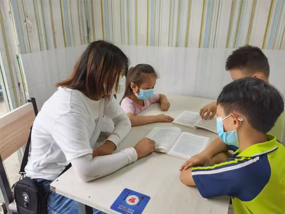 志愿者提前准备好宣讲材料,确定宣讲地点和宣讲流程,严格遵守疫情期间的防控标准,经过一系列测温登记后进入辅导机构。在宣讲环节,志愿者向小朋友们讲述了“双减”政策出台的背景,政策的具体内容,以及政策出台后取得的成效,同时鼓励孩子们在课余时间能够参与到音体美等活动中,健康快乐成长。在孩子们了解“双减”政策后,志愿者主动担任课堂老师,讲解课本上的新知识,并且耐心地辅导孩子们的作业,讲解和巩固作业中的知识点,孩子们认真倾听,积极配合,顺利地完成了一堂课。在课间,志愿者与小朋友们做游戏,嬉戏玩耍。