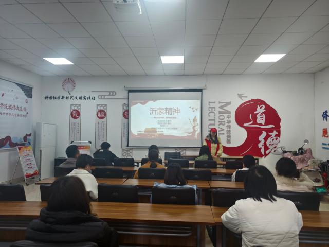 沂蒙精神,薪火相传。志愿者们以饱满的热情,通过图文展示、短视频播放等丰富多彩的形式,向柳园社区的工作人员深情讲述了乳汁救伤员、女子火线桥、小推车送粮食、战时托儿所等一系列感人至深的沂蒙革命故事。他们声情并茂的讲解,生动诠释了“党群同心、军民情深、水乳交融、生死与共”的沂蒙精神内核,让在场的每一位听众深受触动。