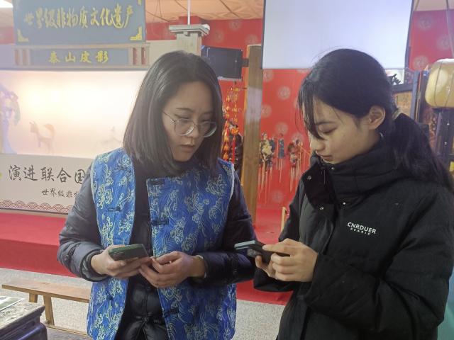 在线下活动环节,实践队成员亲临泰山皮影戏传承基地,与皮影戏传承人进行了面对面的深入交流。传承人详细阐述了泰山皮影戏的历史渊源、独特的表演特色以及精细的制作工艺。实践队成员全神贯注地聆听讲解,并积极提出自己的疑问。在传承人的悉心指导下,实践队成员还亲自体验了皮影的操控技巧,深切感受到了皮影在灯光照射下所展现出的灵动魅力。通过与传承人的亲密互动,实践队成员深刻体会到了非遗传承人的执着坚守与责任担当,从而更加坚定了传承非遗文化的信念和决心。