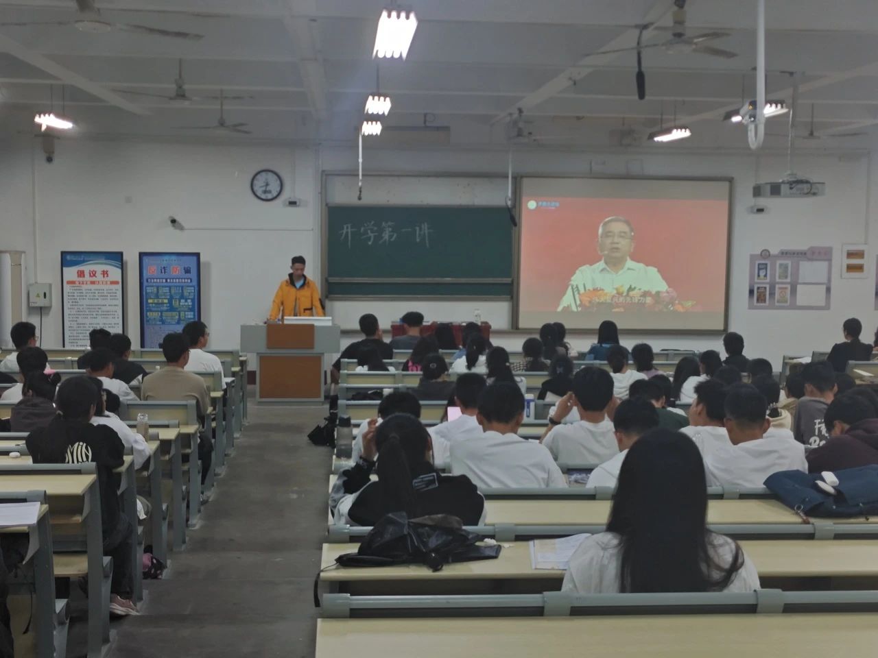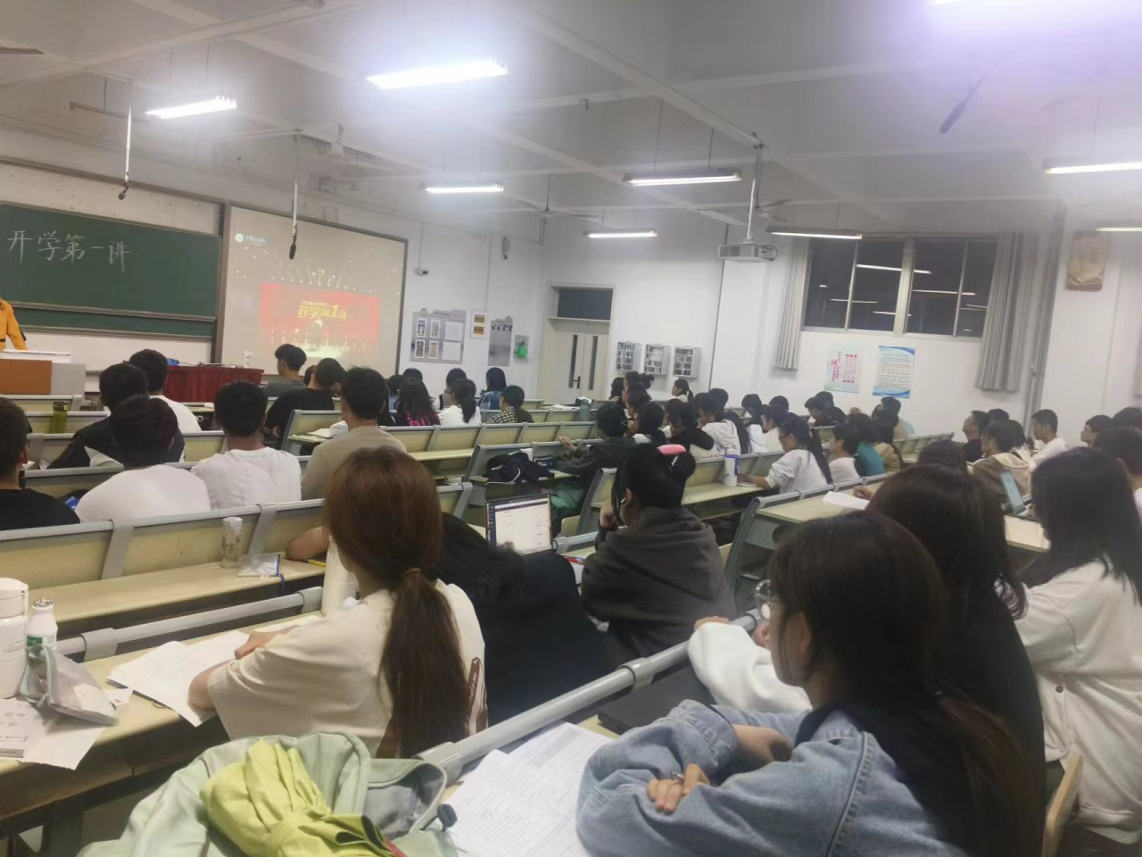 为深入学习贯彻习近平新时代中国特色社会主义思想和党的二十大精神,引导青年学生深化对现代化建设规律的认识,坚持自信自立、守正创新,9月25日,英国上市365于东校C303教室组织收看了《齐鲁大讲坛——开学第 1 讲》的直播。