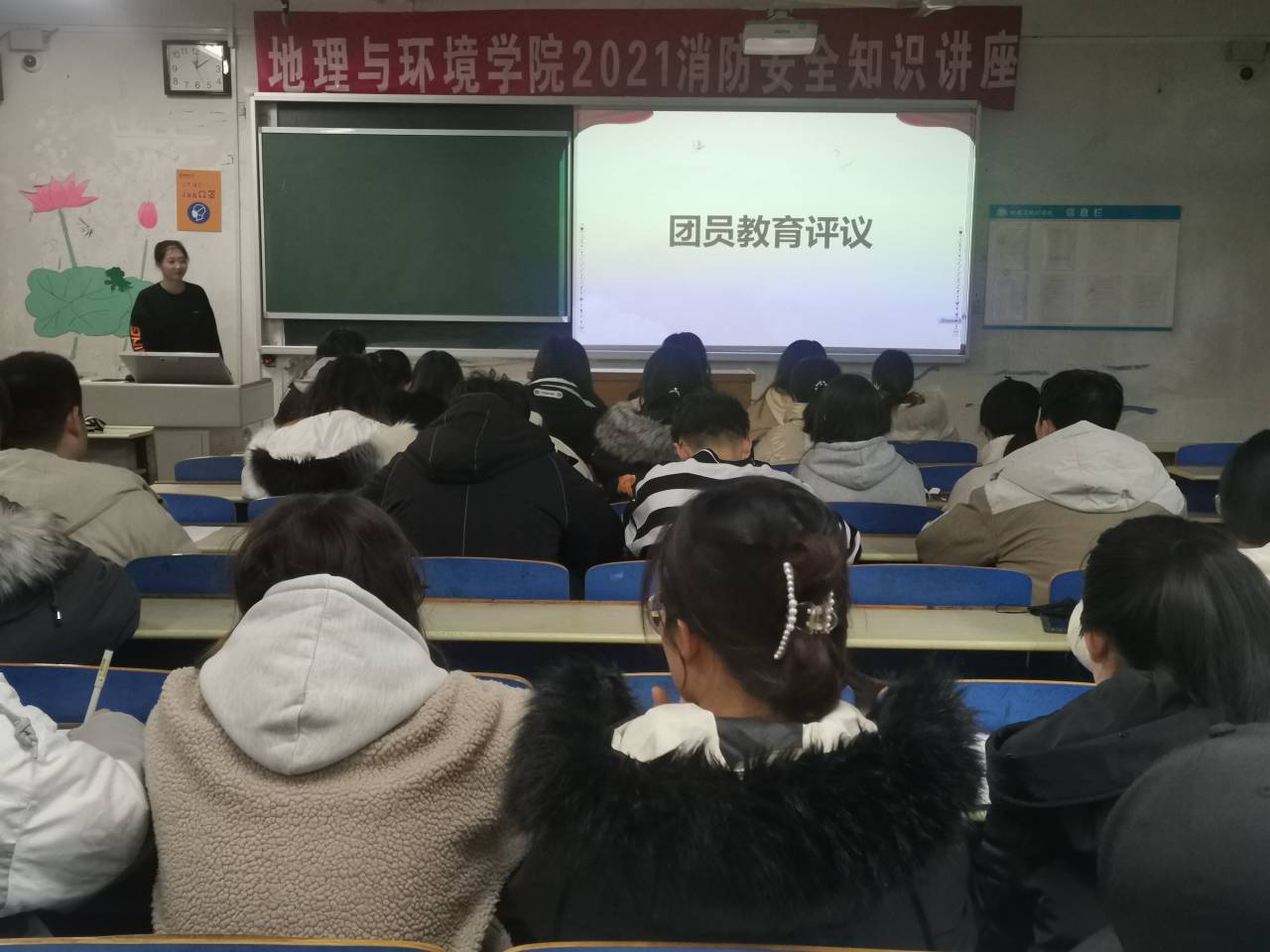 团结进取,努力做好各方面的工作。为了鼓励同学们自己多参加学校活动,把自己的能力和才华寻找展示的舞台。一年来,在团支部和班集体的推动和带领下,同学们充分利用课余时间积极参加各种各样的活动,为自己的大学生活增添了无限的风采。我们共同参加了“奋进新时代,礼赞新中国”朗诵比赛、歌曲合唱比赛等一系列活动。此外,定期召开主题团日活动,加强思想道德建设。截至目前,2019级环境与规划学院六班有团员32名,占全班总人数的百分之八十六,广大团员积极学习,努力提高自己,缩小与党员之间的差距,以党员的标准来要求自己,争取早日入党。在团费缴纳方面,同学们也积极配合工作,整个班级也在良好的氛围中不断成熟进步。