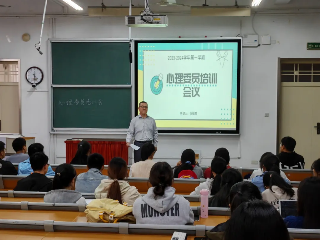 张福善肯定了心理委员的重要性,提醒心理委员要明确自己的定位和职责,做好日常观察,对班级同学多多关注,主动对心理有困惑的同学进行耐心开导,传递温暖,充分发挥朋辈互助力量,协助心理辅导老师开展多种心理宣传工作,成为班级心理健康知识的宣传员。