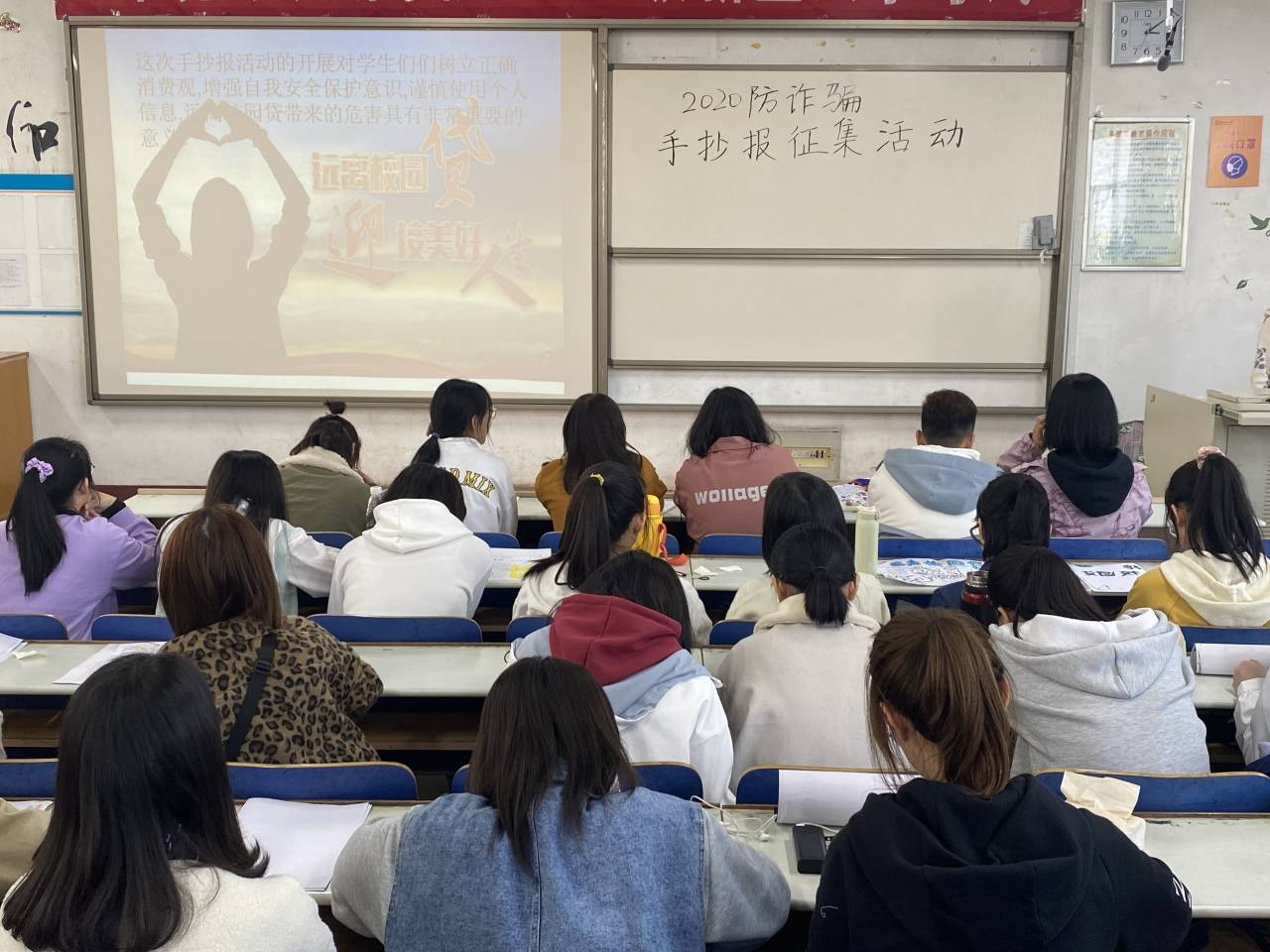 近期校园贷风险逐渐暴露,过度消费、冒名借贷、暴力催收等新闻频频爆出。为提醒学生们警惕校园贷,认清校园贷违法犯罪活动的欺诈本质和严重危害,增强其防范意识,10月24日,环境与规划学院于东校区4#C306举办了“提高自身警惕性 提防校园贷诈骗”手抄报征集活动。