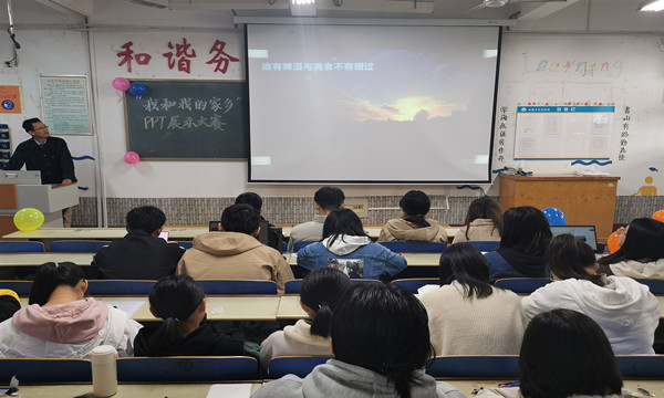 踏遍千山万水,风景家乡独好。此次活动大家踊跃报名、积极参赛,参赛者以“我和我的家乡”为主题,展现了家乡的风景地貌、人文历史、特色美食、炫丽城市以及悠闲乡村。王瑜根据自己的亲身经历用镜头记录了家乡的四季与日夜,用图片的形式展示了家乡的风景,徐照宇创造出一个虚拟的人物,以第三方的视角展现了家乡的地域美食和风景地貌。参赛者讲解时幽默风趣、兴致高昂,积极与台下观众进行互动,分享自己与家乡独特有趣的故事。评委公平公正客观打分,在所有参赛者讲解完以后及时汇总评级,高博同学的作品脱颖而出,获得了一等奖。