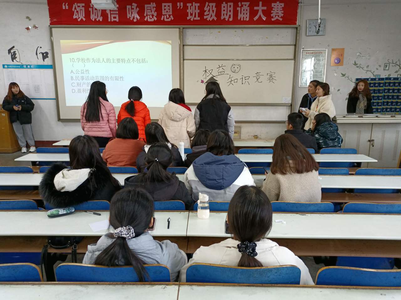 为增加同学们对权益知识的了解,培养同学们为自己维权的意识,继而增强同学们思辨能力,提高综合素质,更好的维护自己的合法权益,12月5日,环境与规划学院于东校区4#C306举办了“晓消费权利 保你我权利”权益知识竞赛。