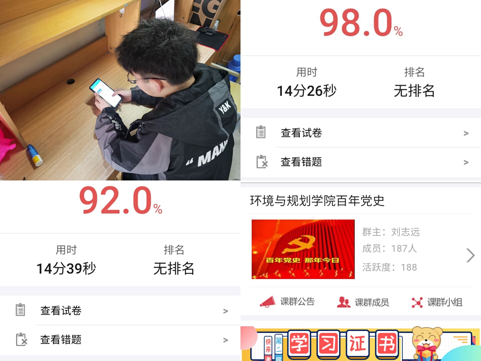 奋斗百年路,启航新征程。本次知识竞赛分为个人必答题和限时选答题两个环节,题目类型丰富多样,有单选题、多选题和判断题。竞赛内容主要涉及党史人物事迹、重大党史事件等内容,覆盖面广、针对性强,突出大学生党史教育的普及性。考试开始前,活动负责人组织好参赛人员并发放题库,参赛者提前记忆竞赛题目,在规定时间内进行线上考试。考试开始后,同学们争分夺秒迅速进入考试状态,心无旁骛,认真作答,仔细检查,及时交卷,针对考试过程中犹豫不决或者出现错误的习题,同学们赛后及时进行总结整理,背诵记忆,不放过一丝一毫。一组组题目的完成使同学们更加坚定党的理想和信念,自觉地成为共产主义接班人。