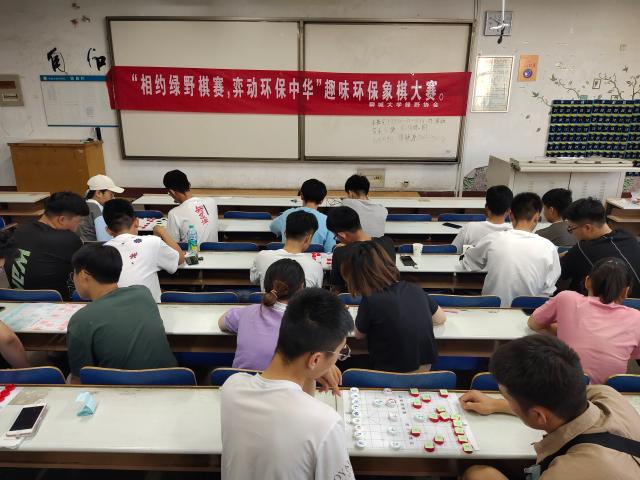 此次比赛共有40名棋手参加比赛,设立1名总裁判。参赛选手来到比赛现场后,利用现场的废旧物品制作象棋、棋盘以及各种比赛用品,在相互交流中为开赛作好准备。主持人宣读了比赛规则后,专业人员对棋钟的使用进行了说明,比赛正式开始。活动通过抽签的方式把参赛者两两分成20组对决。比赛中,棋手们屏气凝神,在棋盘上布兵摆阵,棋盘之上,兵来卒往、炮飞马跳、掷子有声。历经约3个小时,4轮激烈的角逐,评选出了一等奖1名、二等奖1名、三等奖2名。参赛的棋手们纷纷表示:“感谢学校给我们提供这个平台,让这么多棋友能够凑在一起切磋棋艺,同时还认识了许多与自己志趣相投的朋友,得到了奖品很开心。”