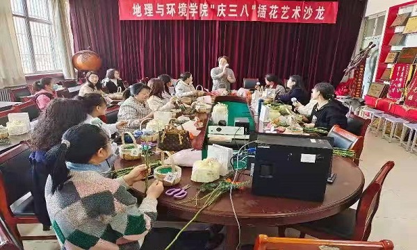 为庆祝第112个“三八”国际劳动妇女节的到来,丰富学院女教职工的业余文化生活,展示学院女教职工的风采,让全体女教职员工过一个健康、和谐、快乐、温馨、难忘而有意义的节日,3月7日,我院工会组织举办了“庆三八”插花艺术沙龙活动。