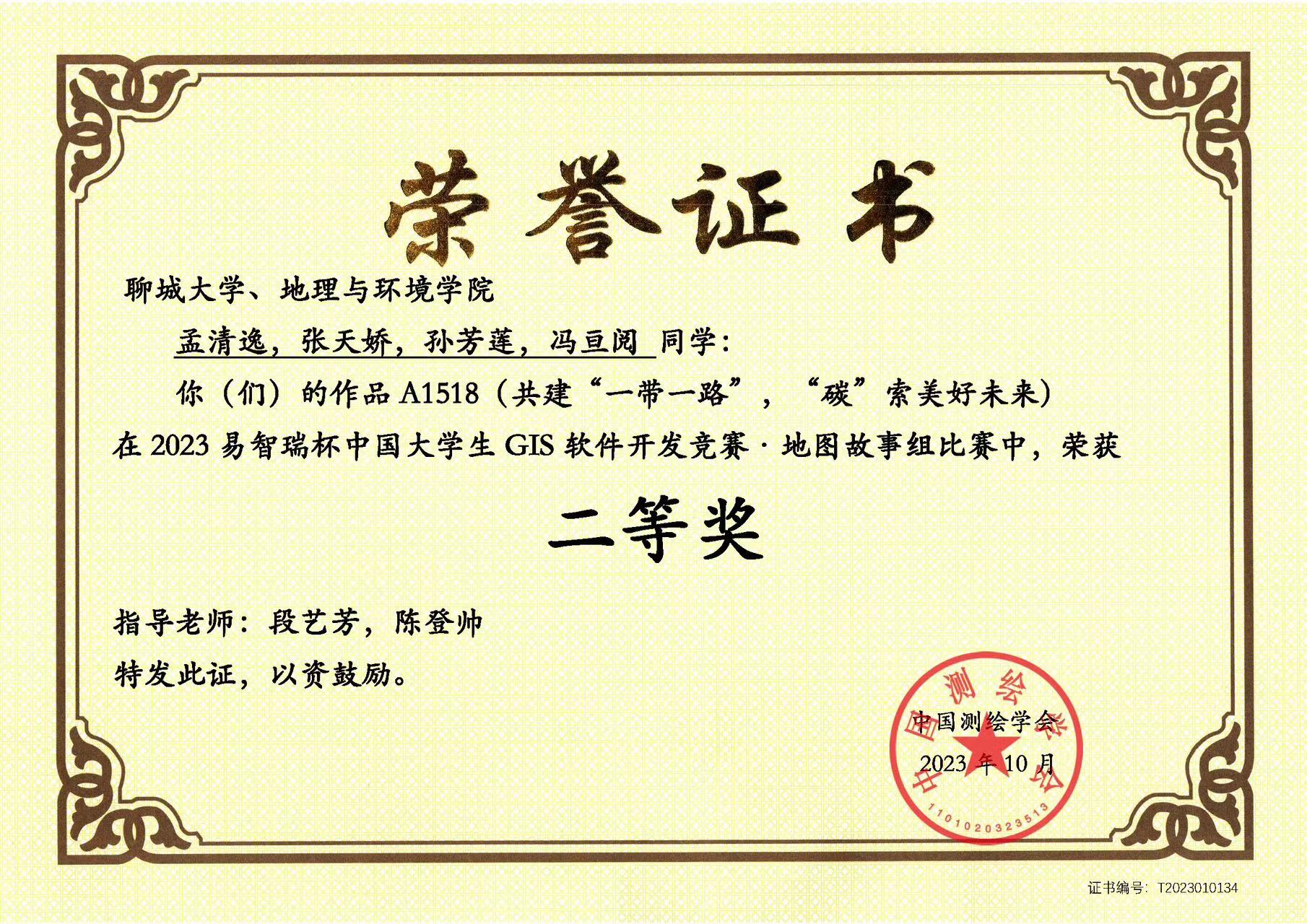 热烈祝贺我院学子荣获2023易智瑞杯中国大学生GIS软件开发竞赛·地图故事组比赛二等奖
