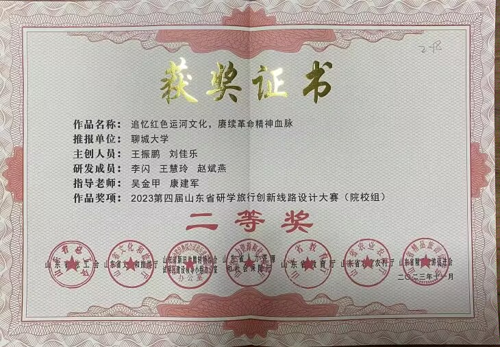 热烈祝贺我院学子荣获山东省研学旅行创新路线设计大赛二等奖