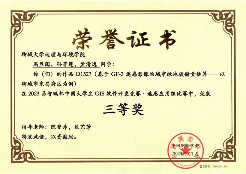 热烈祝贺我院学子荣获2023易智瑞杯中国大学生GIS软件开发竞赛·遥感应用组比赛三等奖