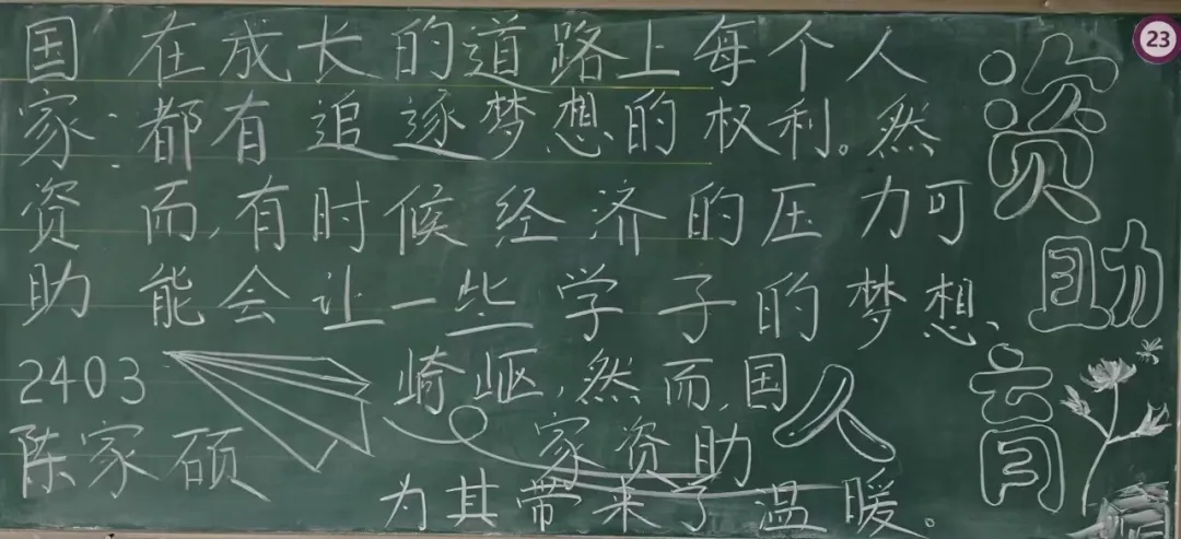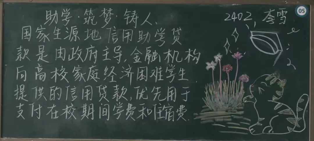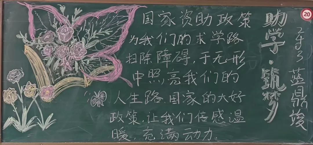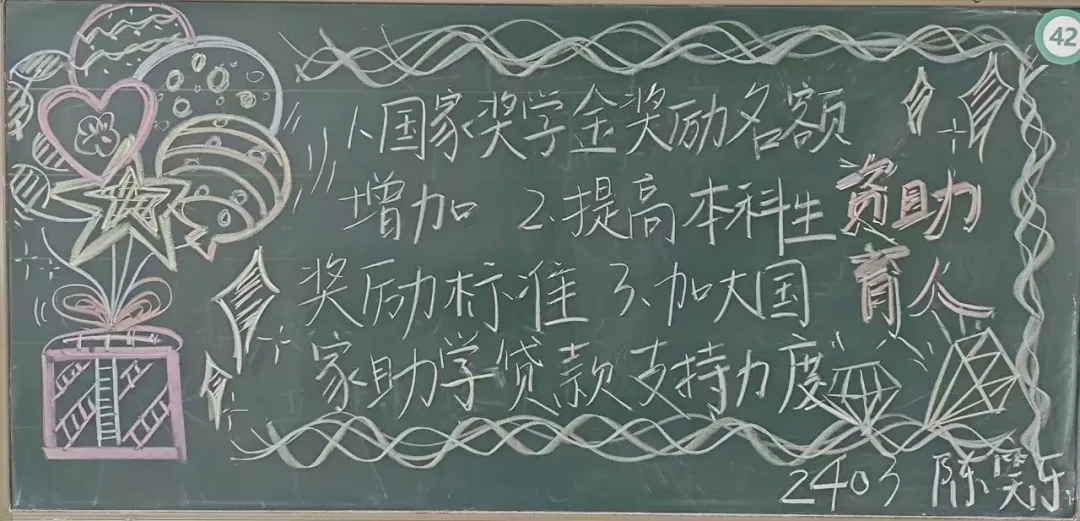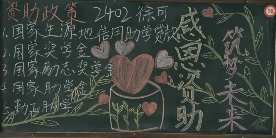 横竖撇捺,勾勒希望,字里行间,情暖人心。为全面普及国家资助政策知识,助力莘莘学子无忧逐梦,英国上市365举办“资助政策绘蓝图 知识传递引航程"板书评选活动,经过对版面设计、板报内容、色彩运用、撰写方式等方面的综合考虑,2024-2025学年第五期国家资助政策宣传特别版评选结果如下: