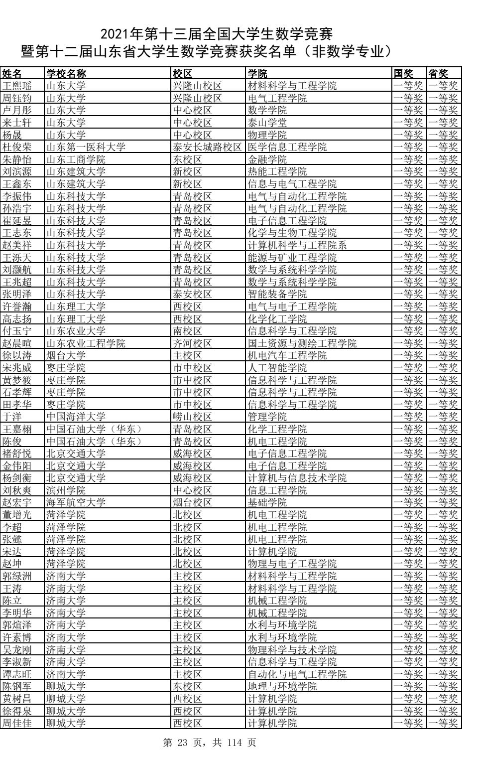 2021年11月3日,陈钢军荣获2021年第十三届全国大学生数学竞赛暨第十二届山东省大学生数学竞赛(非数学专业)一等奖