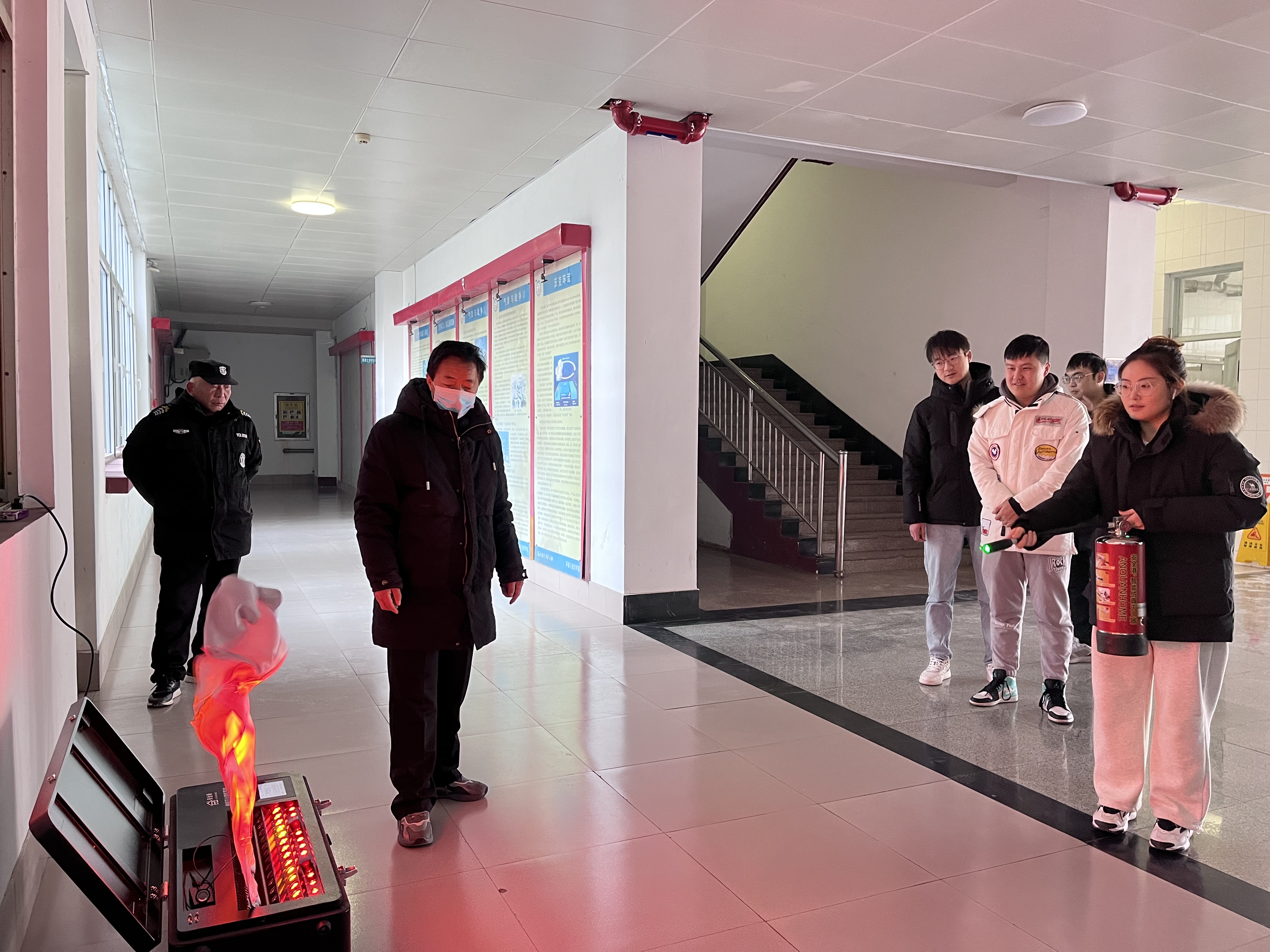 安全保卫处消防管理中心李清法和支长洪老师结合安全事故典型案例,进行了消防安全知识教育,讲解了消防器材的使用方法和应急疏散的注意事项,阐述了消防安全工作的重要性。