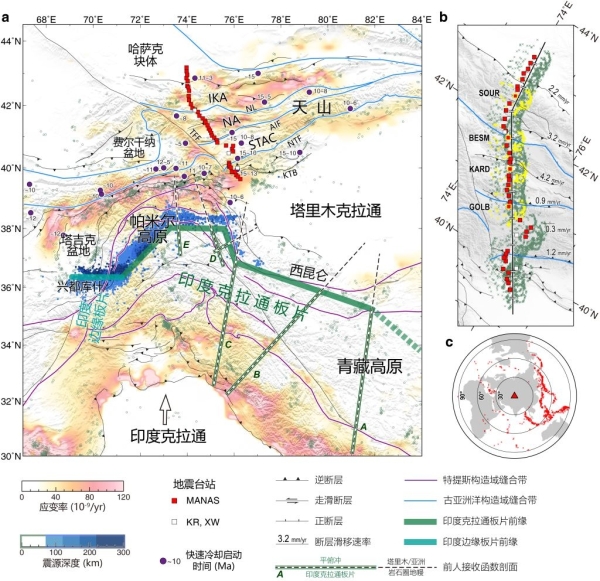 相关研究成果以Intracontinental deformation of the Tianshan Orogen in response to India-Asia collision 为题,发表在《自然-通讯》(Nature Communications)上。研究工作得到中科院战略性先导科技专项、国家重点研发计划、国家自然科学基金、中国博士后科学基金、中德(CSC-DAAD)博士后奖学金等的支持。