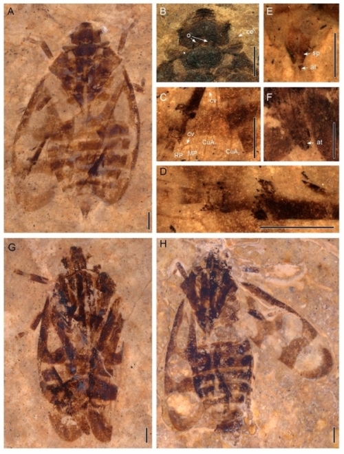 图1.发现于西藏尼玛盆地的沫蝉科新化石——西藏古胸沫蝉(Nangamostethos tibetense)