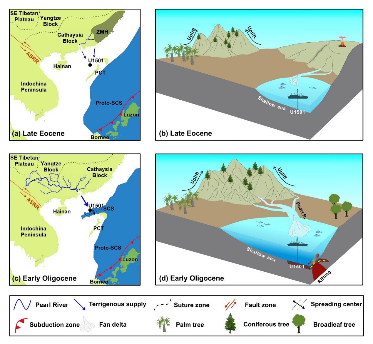 本研究基于南海北部晚始新世约3500万年以来长期、连续且高分辨率的沉积记录,在国际上首次精确限定了珠江的发育和形成历史,明确了高原隆升驱动了珠江演化,对于加深理解新生代构造作用如何控制边缘海沉积环境演化和陆上河流形成演变具有重要意义。