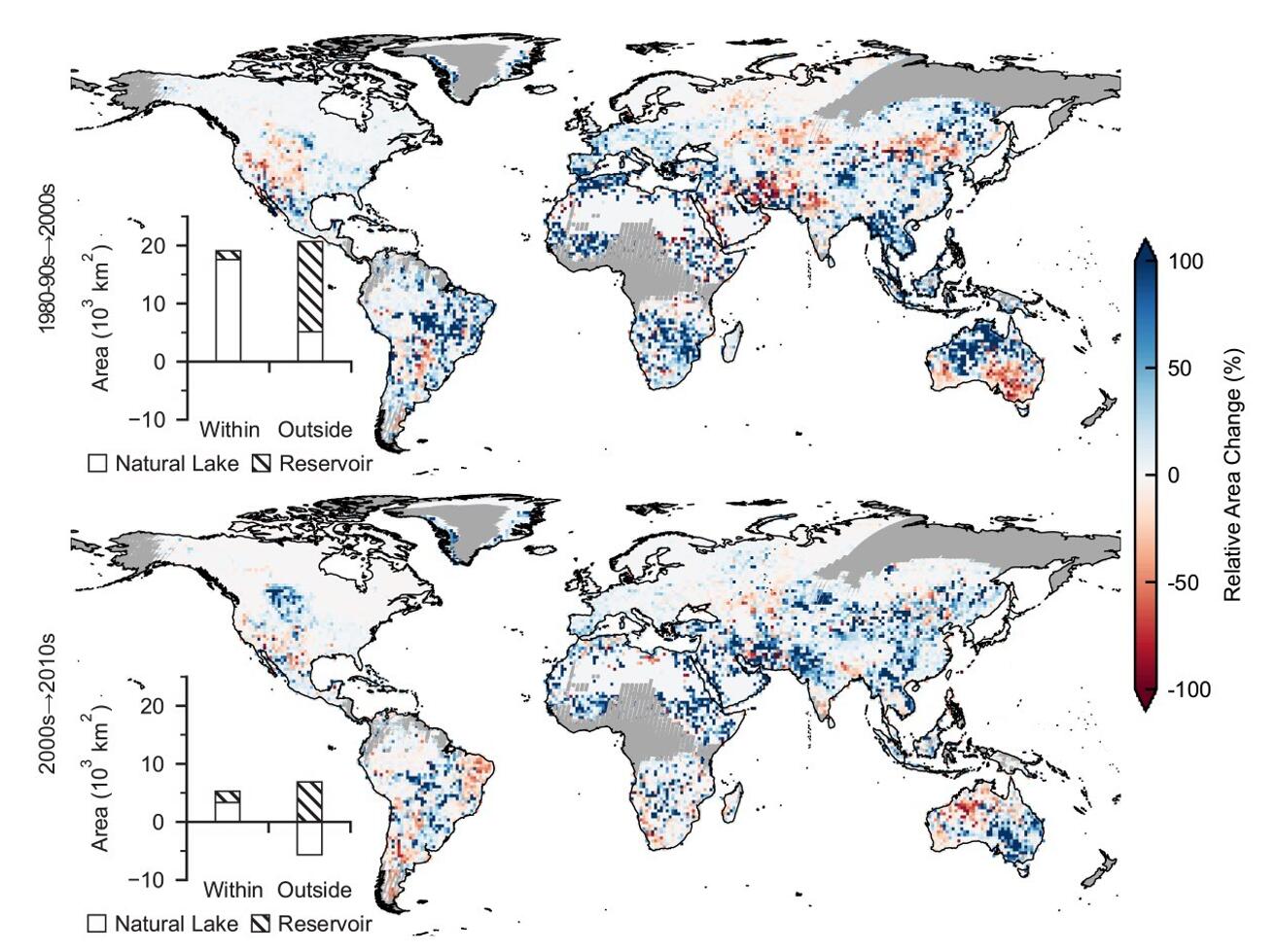湖泊在全球水文和生物地球化学循环中扮演着重要角色,同时也拥有重要的生态功能。然而受气候变化和人类活动的影响,湖泊在全球范围内发生了快速变化,严重威胁了其生态功能与价值。清晰了解湖泊面积的时空动态过程是评估湖泊生态环境变化及其影响的基础。