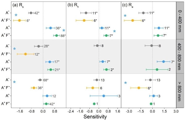 中国科学院华南植物园鼎湖山森林生态系统国家野外科学观测研究站研究人员等,以全球296篇降水变化控制实验研究论文的观测数据为基础,采用Meta分析方法量化了PF对Rs及其组分的影响。结果表明,随着本底年平均降水量的增加,PF对Rs的影响逐渐减小。当数据按气候条件分组时,PF的增加在干旱条件下对Rs有积极影响,而在半湿润或湿润条件下无显著影响,PF的减少在所有气候条件下对Rs均有抑制作用。PF增加的正效应主要来自干旱条件下异养呼吸的积极响应,而PF降低的负效应主要来自根系生物量和呼吸的减少。该研究提供了跨气候区域PF对Rs及其组分的不同影响的综合分析,为理解和模拟生态系统碳循环对全球降水变化的响应提供了框架。