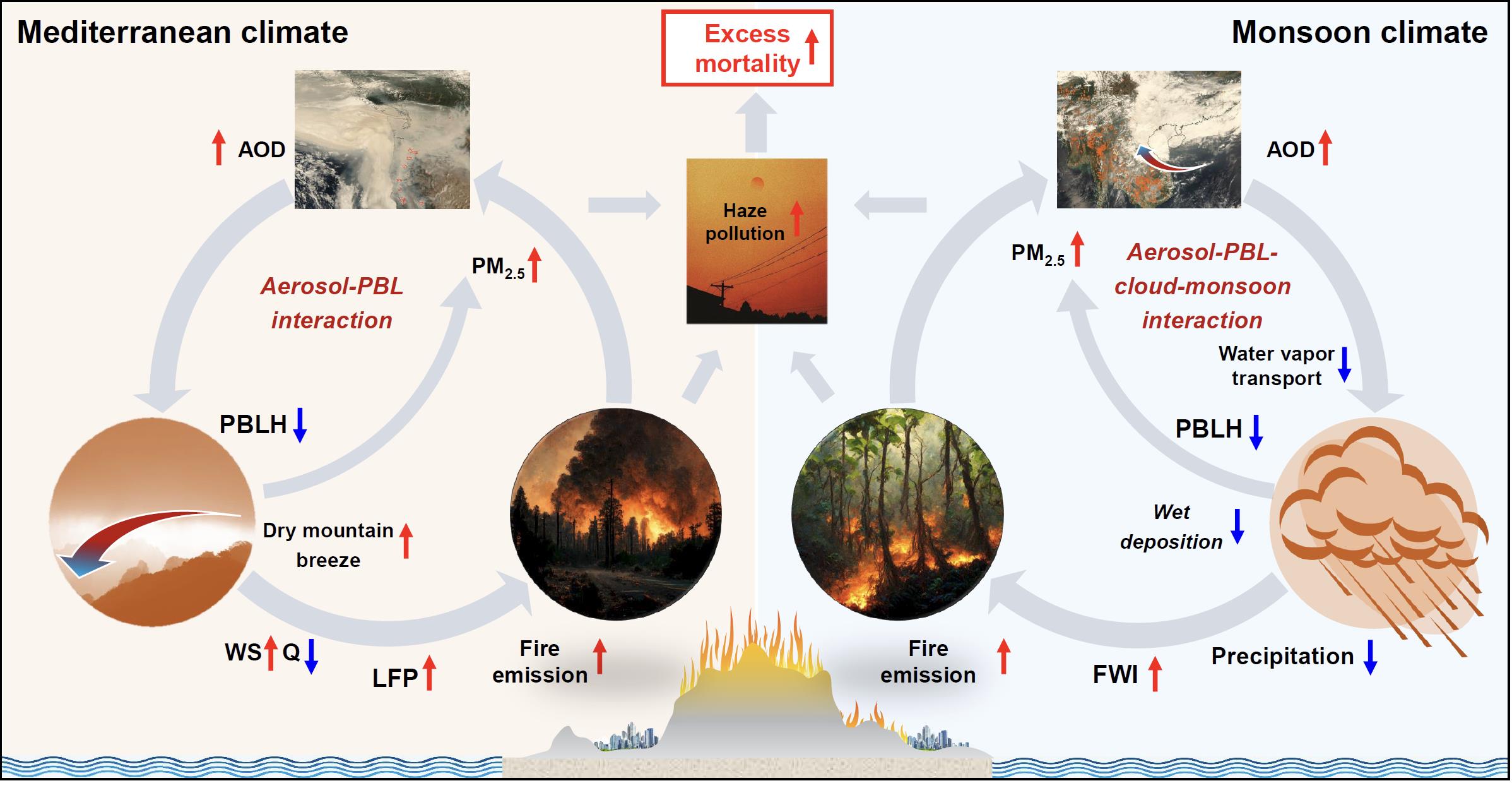 此次在《Science》杂志发表的成果,是上述系列工作基础上的重要突破,其创新之处在于发现野火不仅是传统认识上的受气象条件的调制,燃烧排放的气溶胶也可经由复杂的反馈过程显著改变影响火行为的风速、湿度和降水等关键气象参数,进而增强野火的蔓延和扩张并产生更强的环境健康效应。该发现对全球人口密集的沿海地区极端野火事件的预测与提前干预有重要科学支撑,也有望为我国西部和大兴安岭等复杂地形地区的山火防治提供参考;同时,该成果对全球典型地区的大气污染防治、天气预报、人工影响天气以及气候变化应对均有重要的科学意义和应用价值。