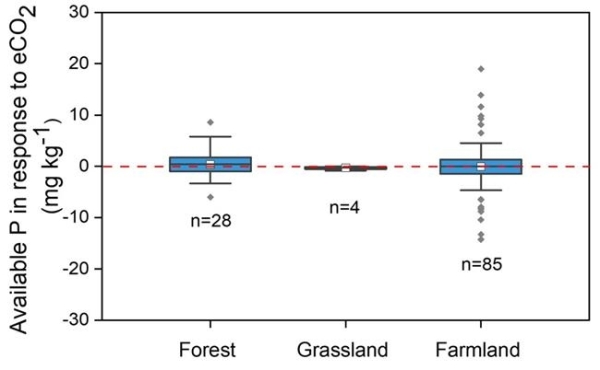 图1 不同生态系统中eCO2对土壤磷有效性的影响