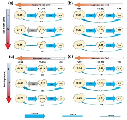 图1.长期演替下有机碳在团聚体各粒径间的流动路径