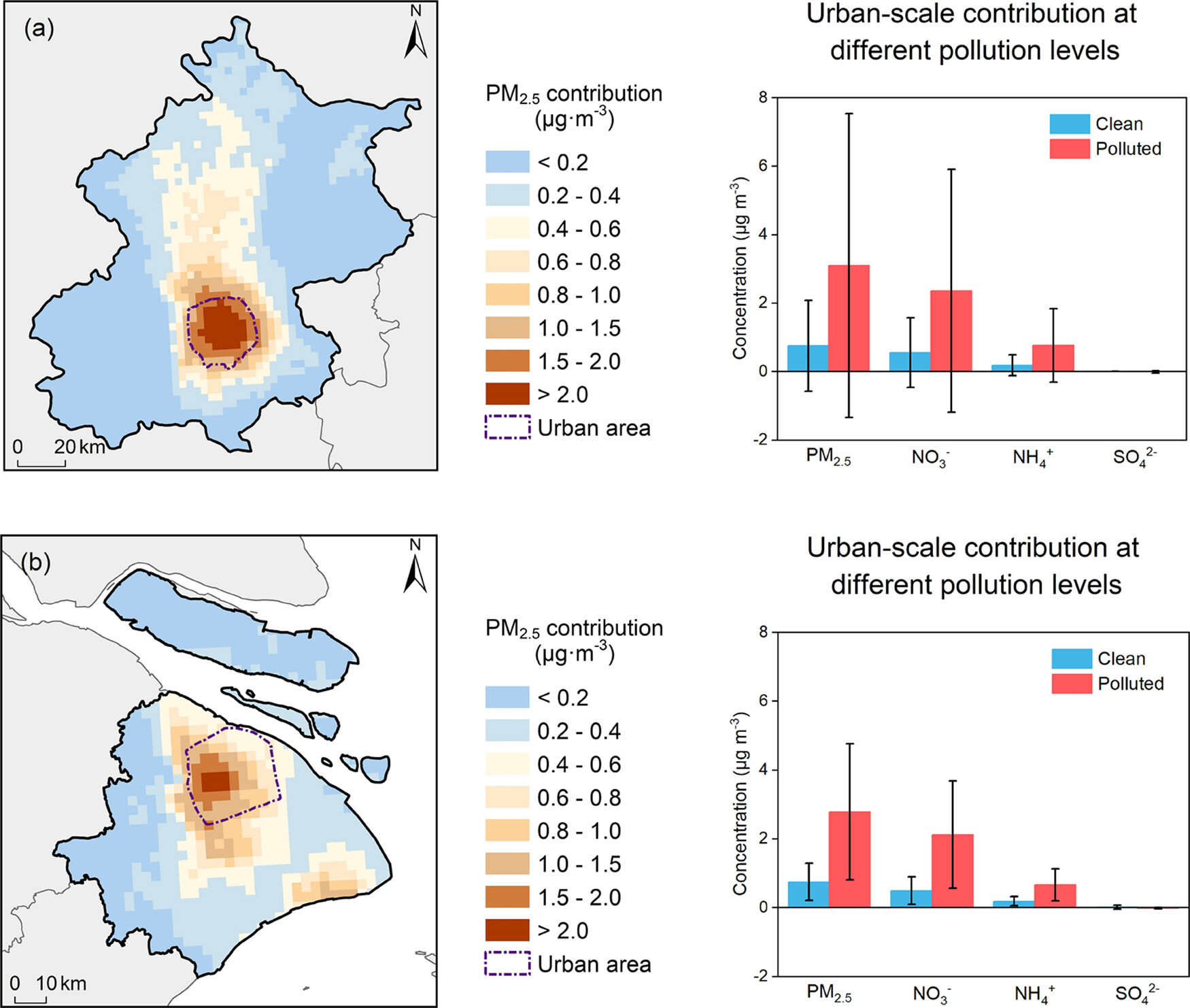 图3.机动车NH3排放对北京、上海冬季PM2.5浓度贡献