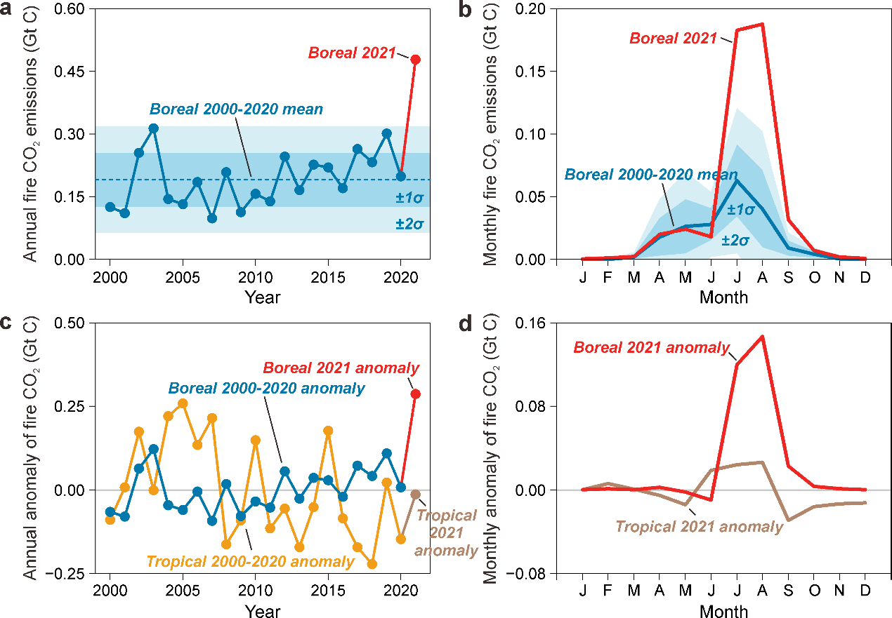 上述成果以“北方野火CO2排放2021年创历史新高”(Record-high CO2 emissions from boreal fires in 2021)为题,以研究论文(Research Article)形式发表在《科学》(Science)期刊上。