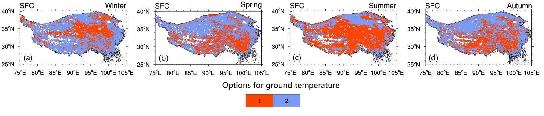 图3 基于MODIS地表温度数据得到的不同季节适用于高原地表温度模拟的参数化方案选项