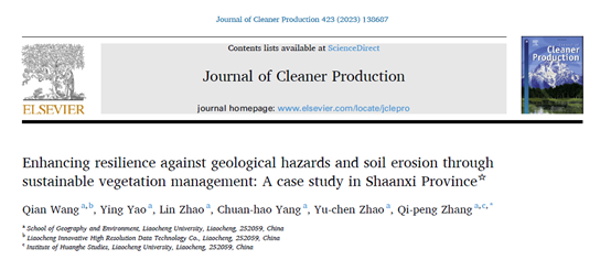 近日,我校英国上市365王倩副教授研究团队在生态学领域国际Top期刊《清洁生产杂志》(Journal of Cleaner Production)上发表了题为《地质灾害与水土流失降低植被覆盖:以陕西省为案例》(Enhancing resilience against geological hazards and soil erosion through sustainable vegetation management: A case study in Shaanxi Province)的研究性文章。王倩副教授为论文的第一作者,第二作者为2019级本科生姚盈,英国上市公司365为唯一署名单位。《清洁生产杂志》(Journal of Cleaner Production)是中国科学院JCR分区下环境科学与生态学领域的一区TOP期刊,2023年影响因子为11.1。