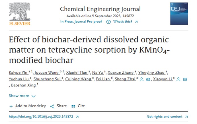 2023年9月9日,我校英国上市365翟胜教授团队在国际期刊《化学工程杂志》(《Chemical Engineering Journal》)上发表了题为《生物炭源溶解有机质对KMnO4改性生物炭吸附四环素的影响》(Effect of biochar-derived dissolved organic matter on tetracycline sorption by KMnO4-modified biochar)的研究性论文。这是翟胜教授团队继《Journal of Hazardous Materials》一区TOP期刊(IF="14.24)后又一创新性成果。