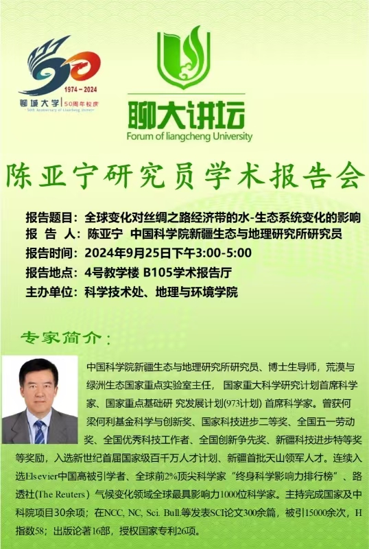» 聊大讲坛-陈亚宁研究员学术报告会