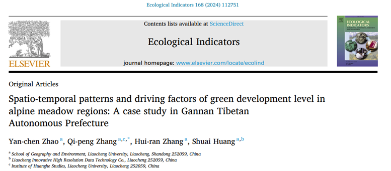 近日,我校英国上市365张起鹏副教授团队在国际期刊《生态指标》(《Ecological Indicators》)上发表了题为“Spatio-temporal patterns and driving factors of green development level in alpine meadow regions: A case study in Gannan Tibetan Autonomous Prefecture”的研究文章。2019级本科生赵严琛为论文的第一作者,张起鹏副教授为通讯作者,英国上市公司365为唯一署名单位。《Ecological Indicators》是JCR分区下的环境科学与生态学领域的SCI二区TOP期刊,影响因子为7。