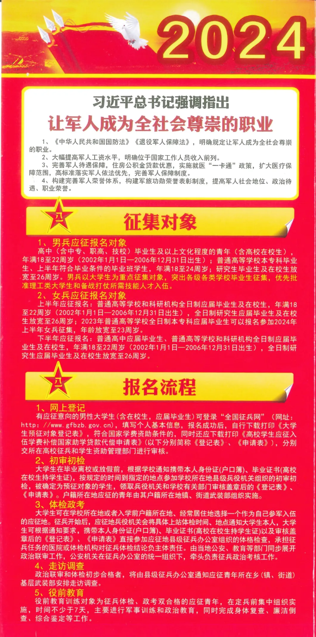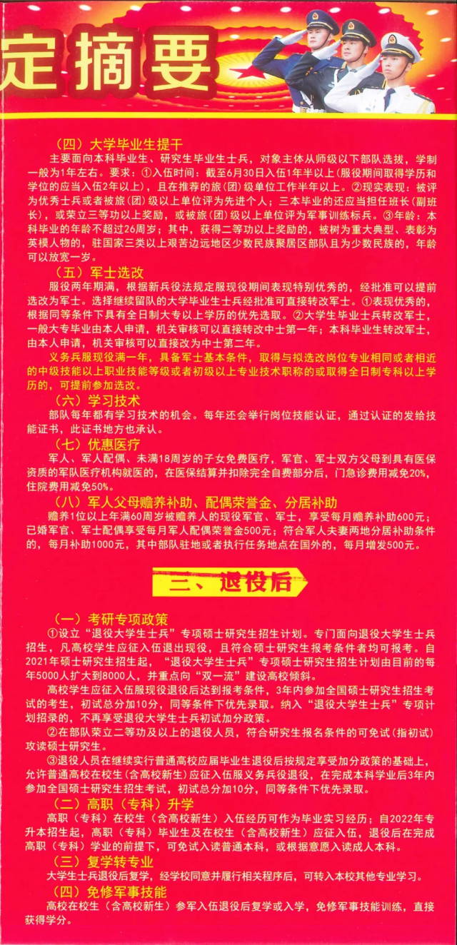 政策性就业岗位解读|2024年大学生征兵入伍政策规定摘要