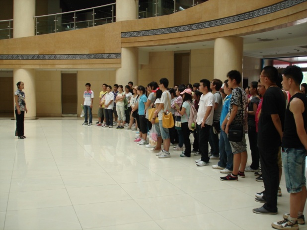 实习学生排队参观聊城运河博物馆